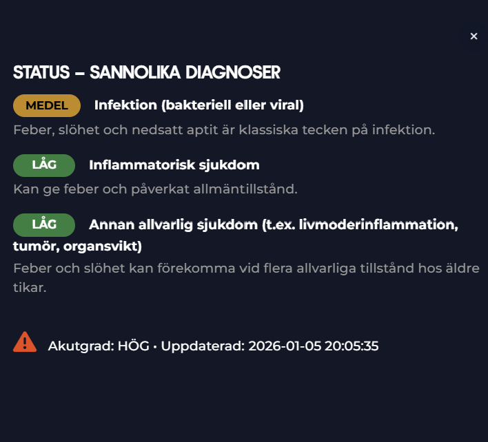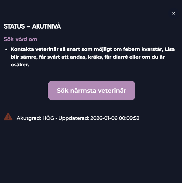 AIVET ger vägledning och riskbedömning – men ersätter inte veterinärens fysiska undersökning.