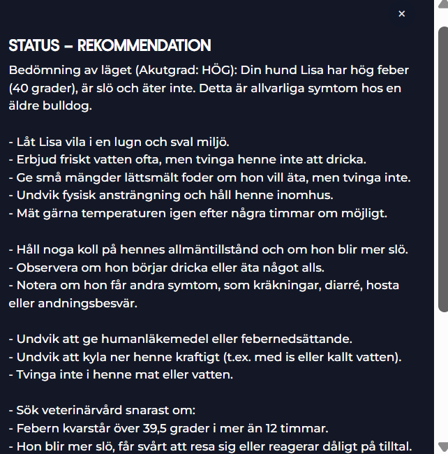 AIVET ger vägledning och riskbedömning – men ersätter inte veterinärens fysiska undersökning.